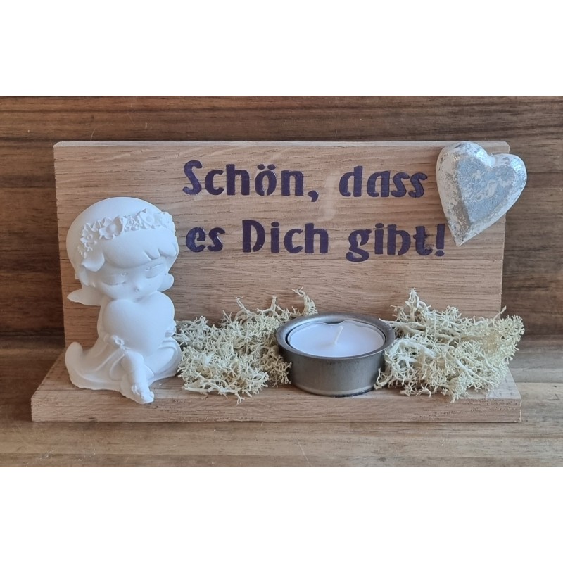 Holz Balken Teelicht "Schön,dass es..." Mädchen mit Herz violette