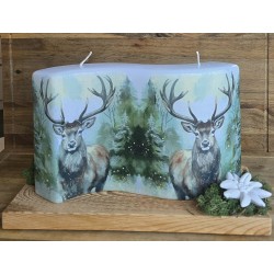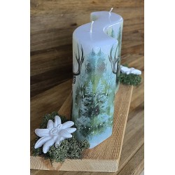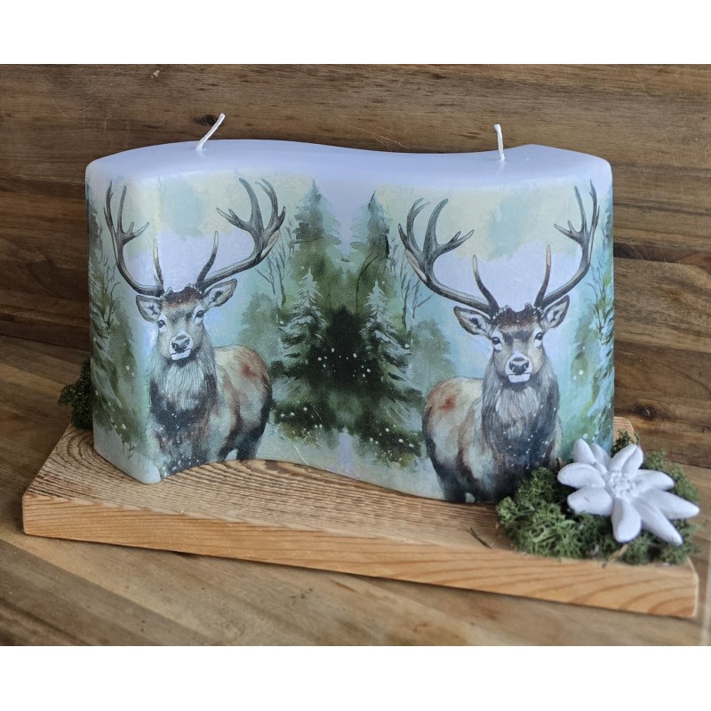 Kerze mit Hirschmotiv auf Altholzbrettchen